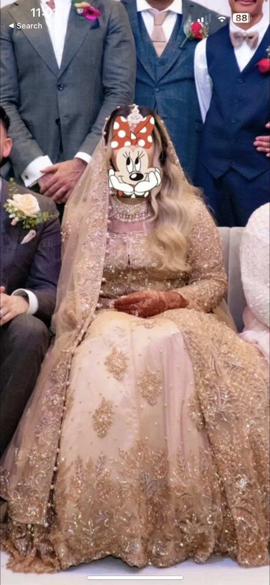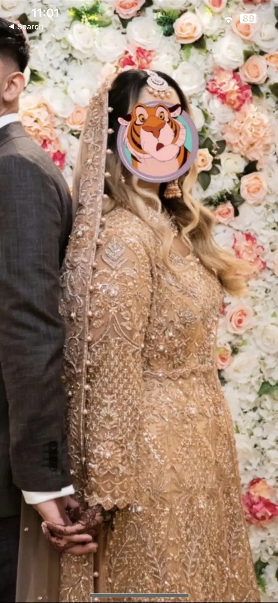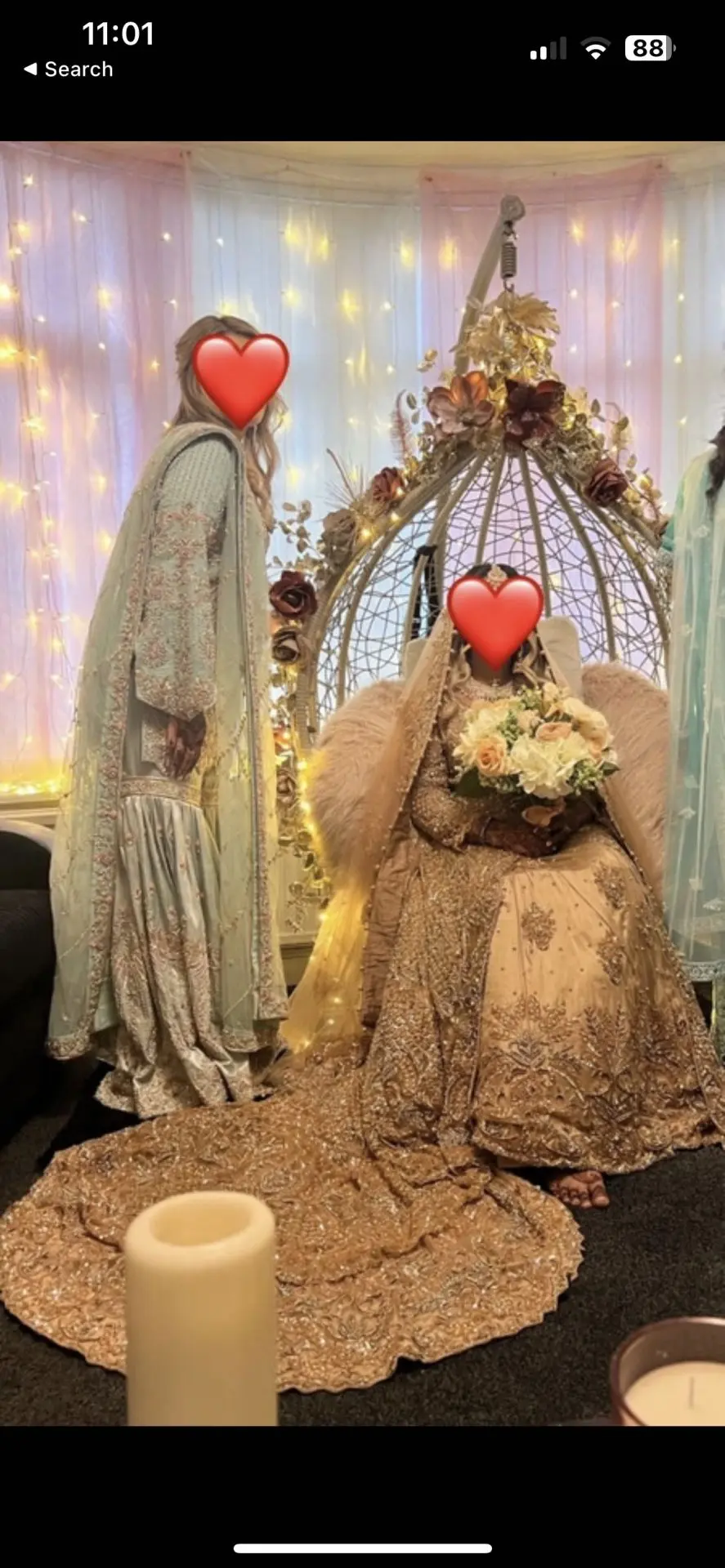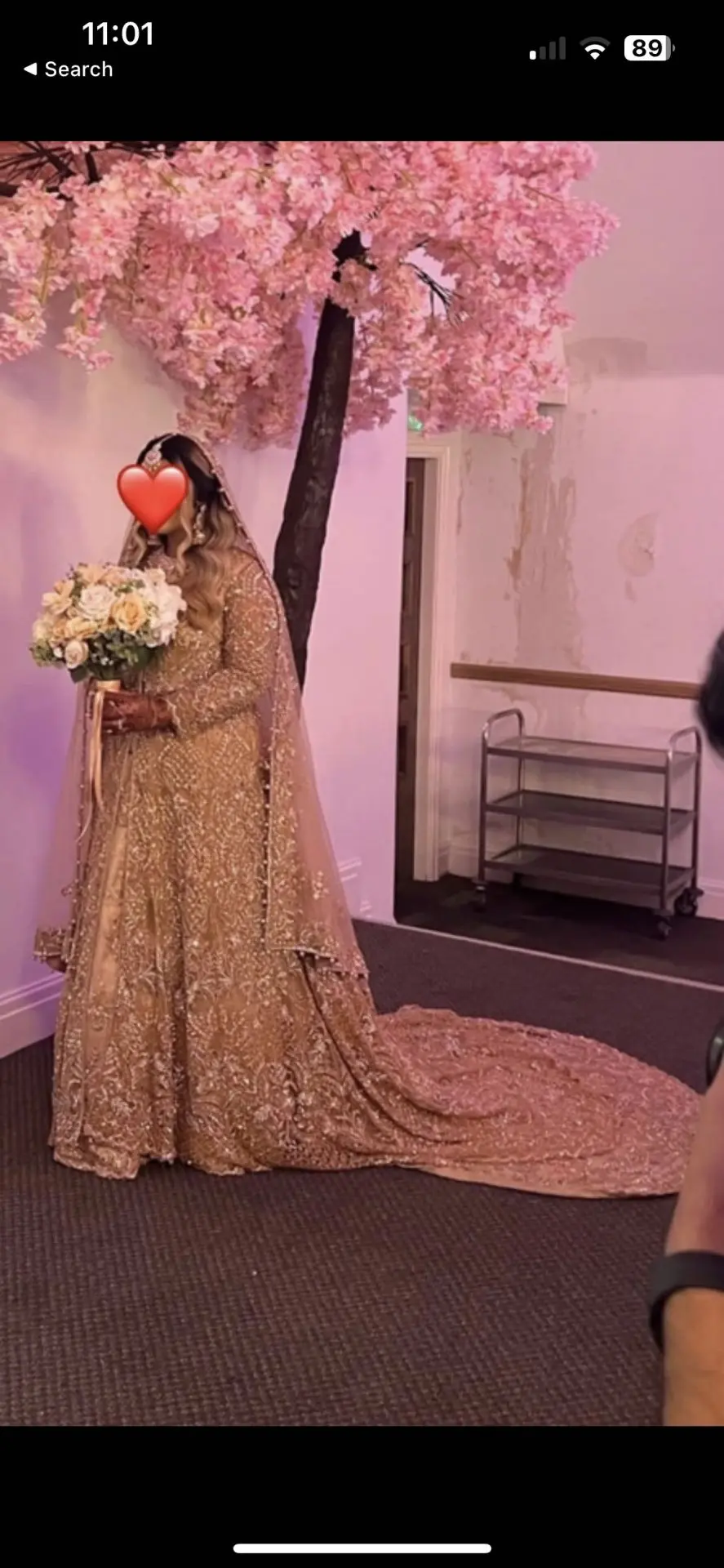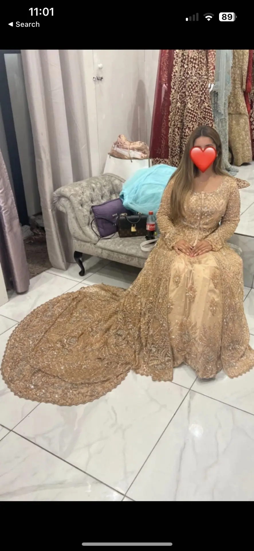 adjustable lehenga skirt with trail, dupatta with trail, (double trail) the top is a jacket with hooks,easy to put on once bridal look is complete.