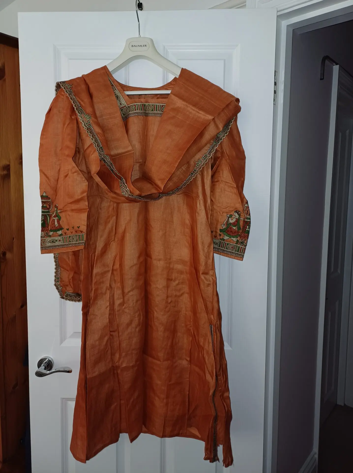 Salwar Kameez January 8, 2024 Id: 30786 Salwar Kameez £15 Bookmark Share Share This Listing Description: Orange three piece outfit Simply embroidered tunic with gold / red / green detail at neckline and cuffs Matching shawl with embroidered detailed at edges Plain matching trousers Contact Information Phone: 07929667085 Email: Anupa.damle@blueyonder.co.uk categories: Women Post New Review Cancel replyYou must be logged in to post a comment.