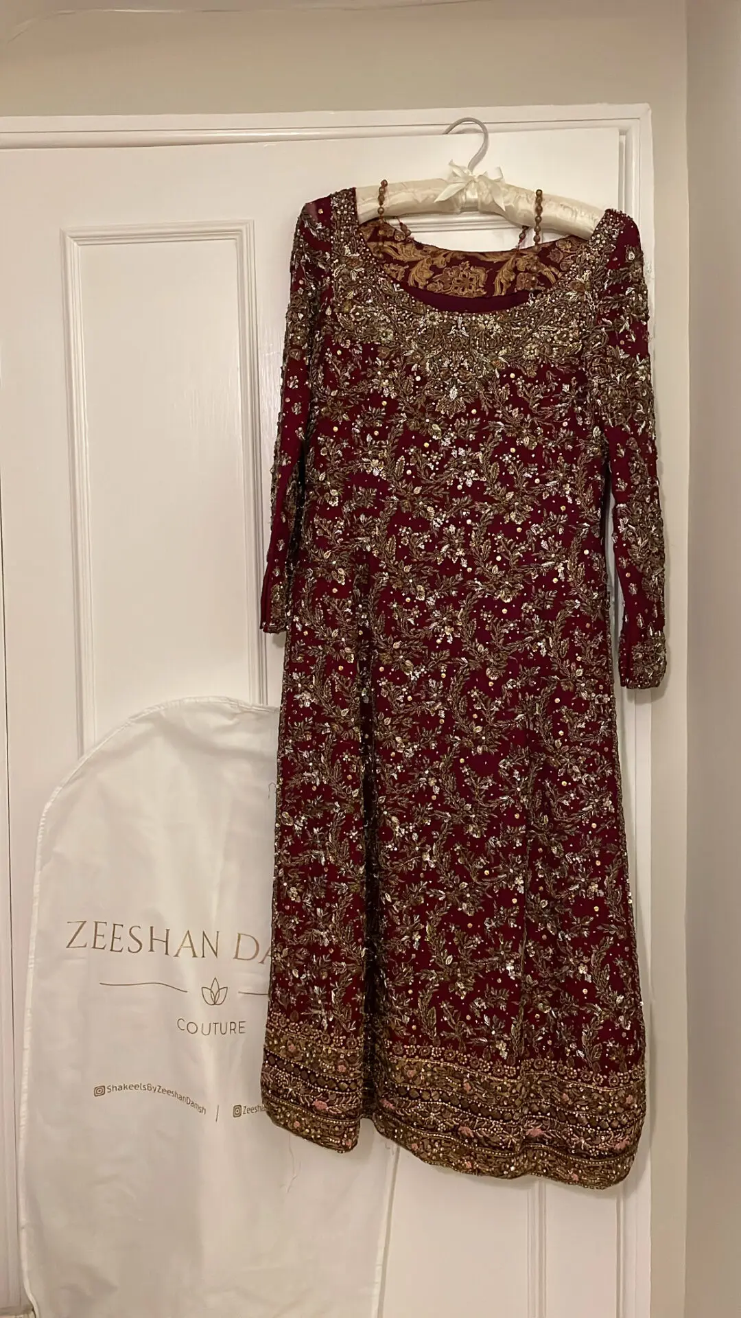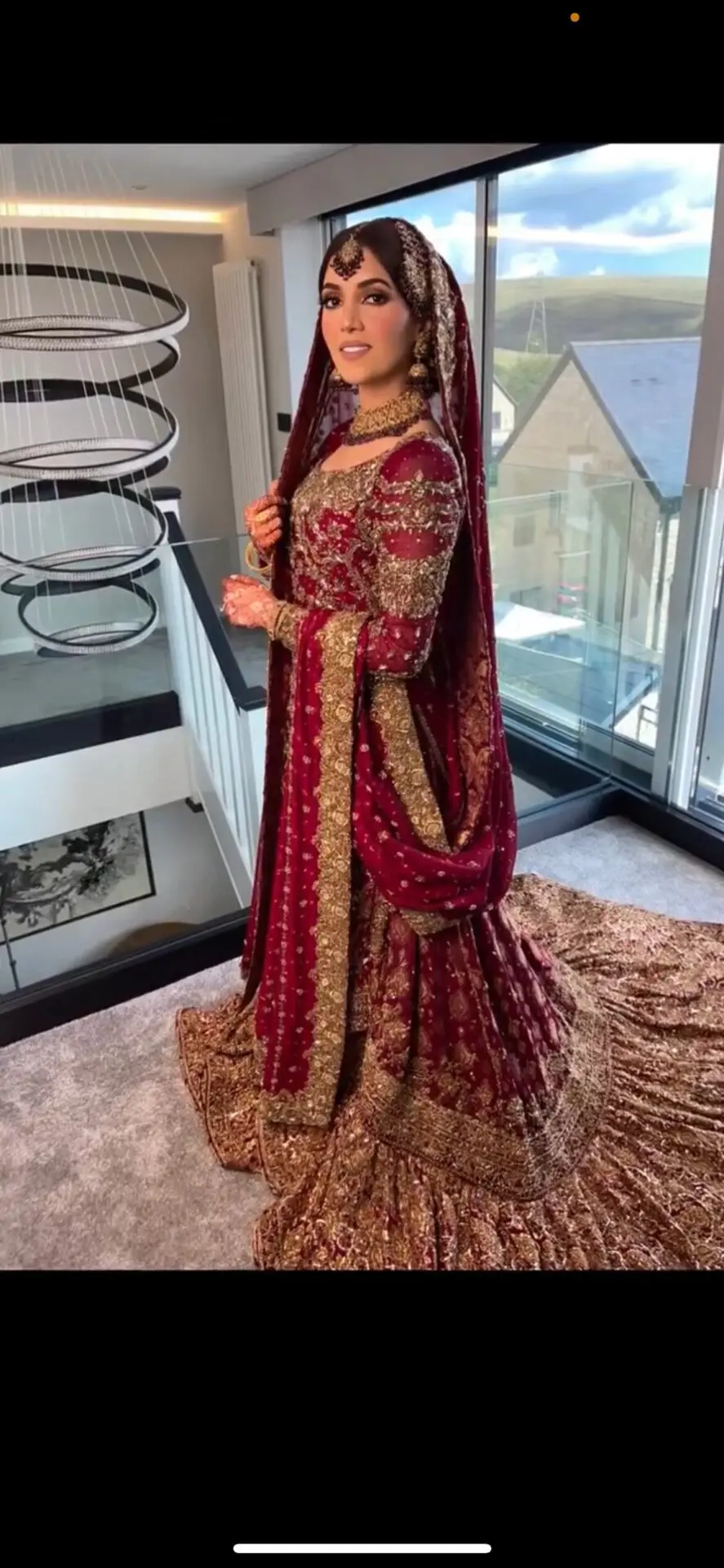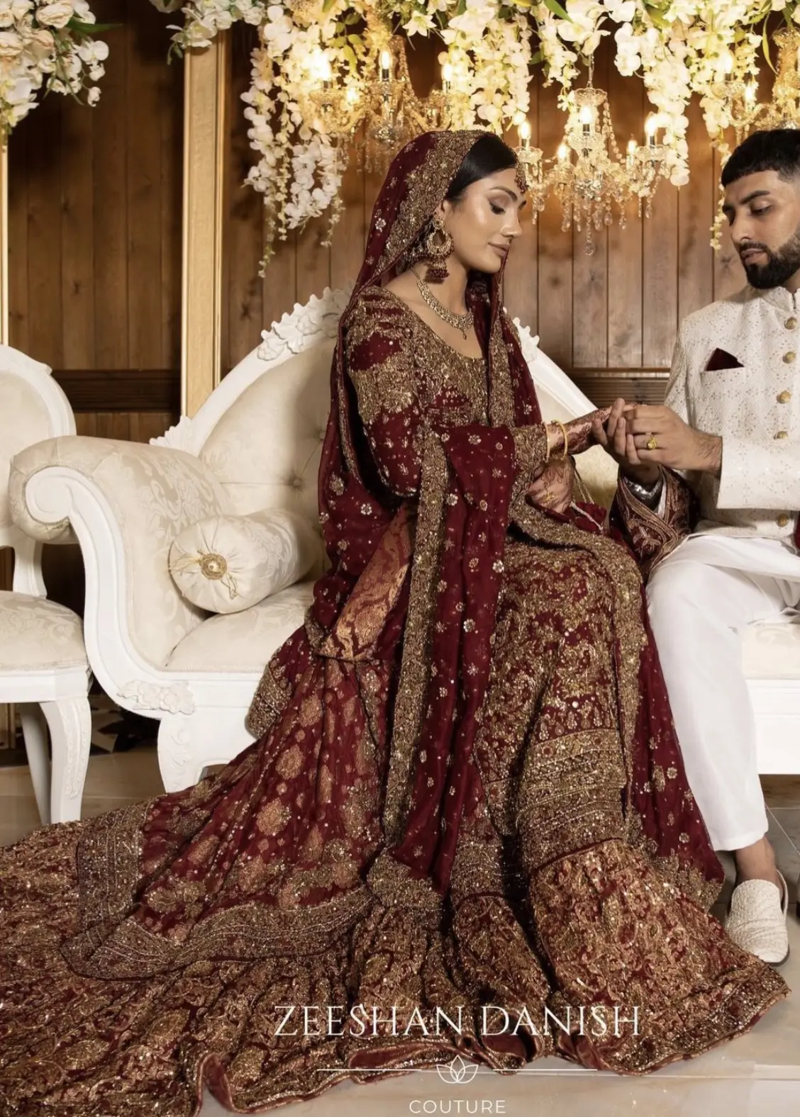 Designer Shakeels by Zeeshan Danish Asian bridal dress, farshi lengha with a beautiful trail.