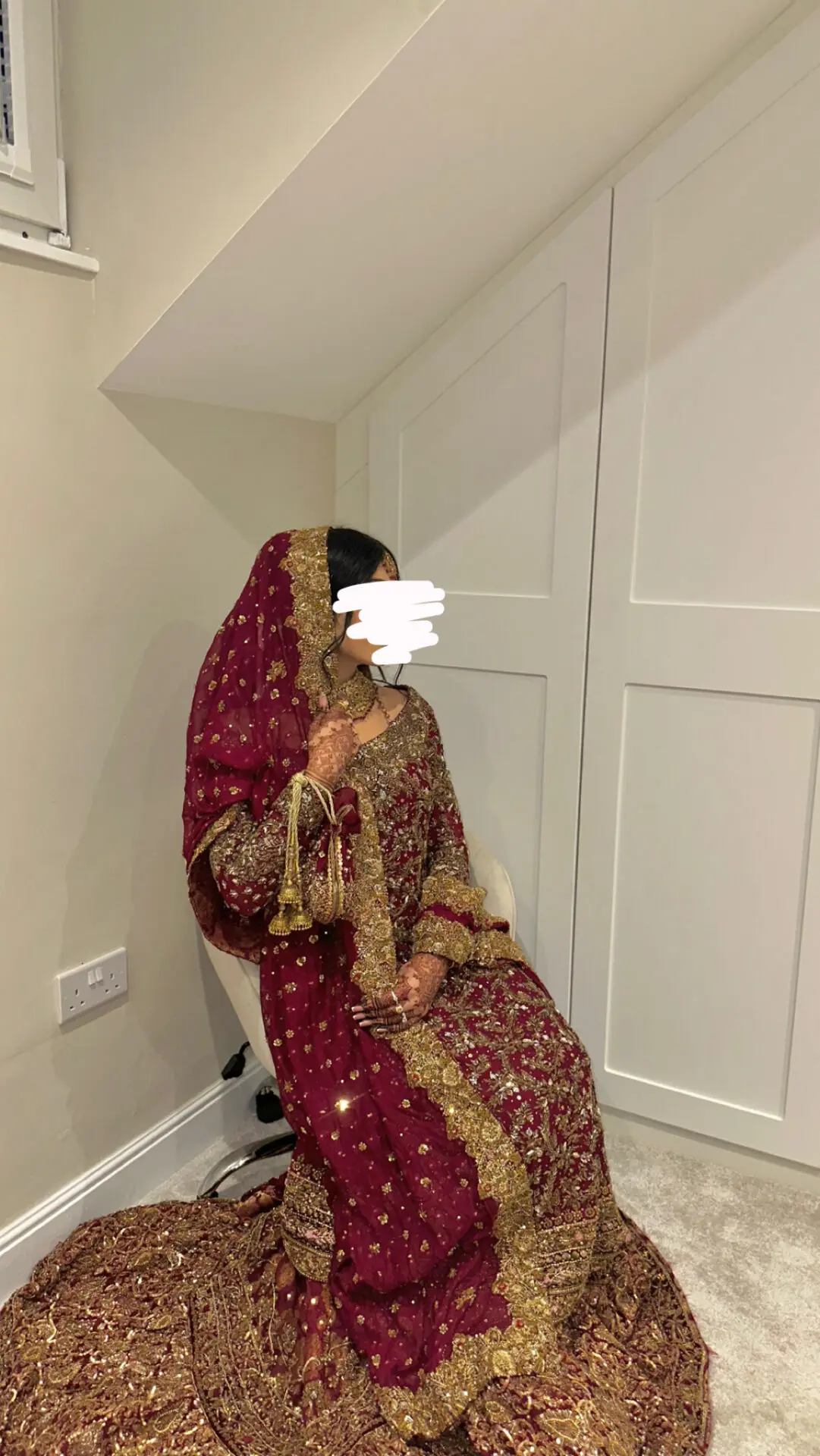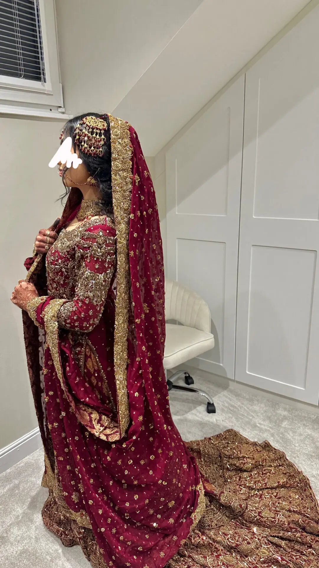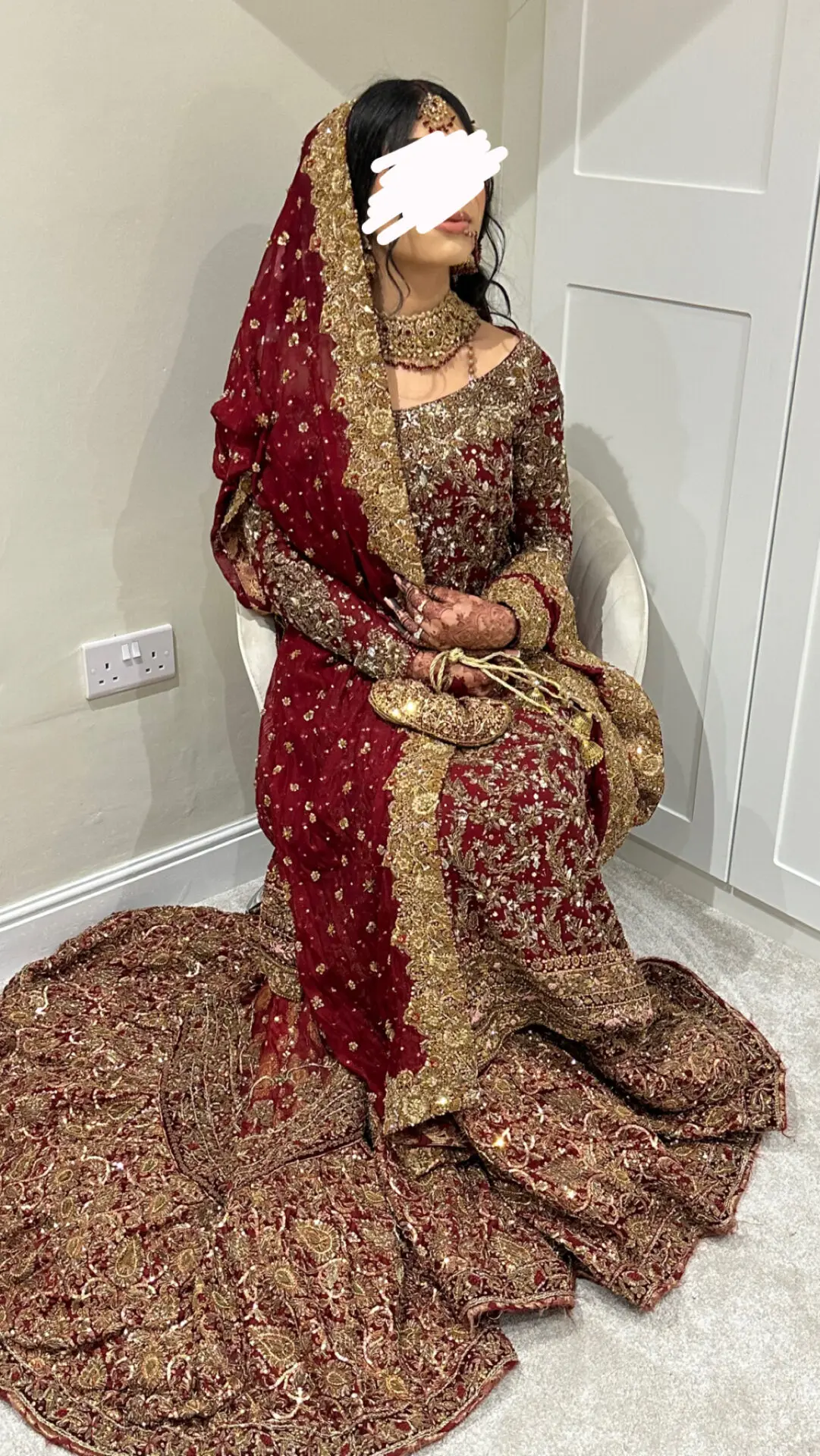 Designer Shakeels by Zeeshan Danish Asian bridal dress, farshi lengha with a beautiful trail.
