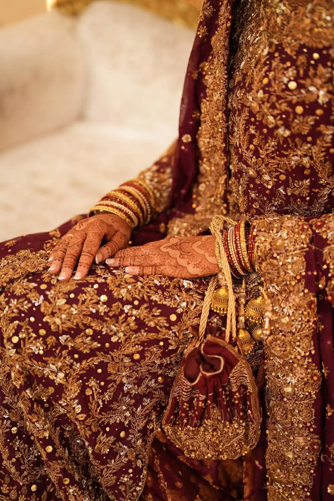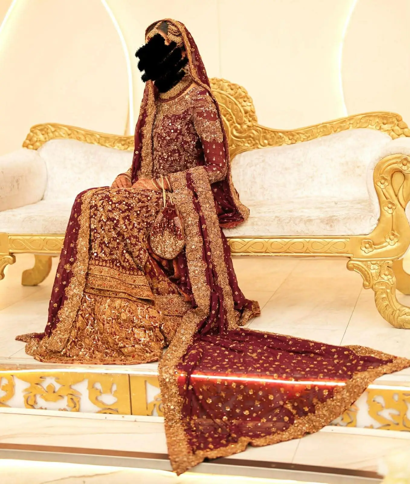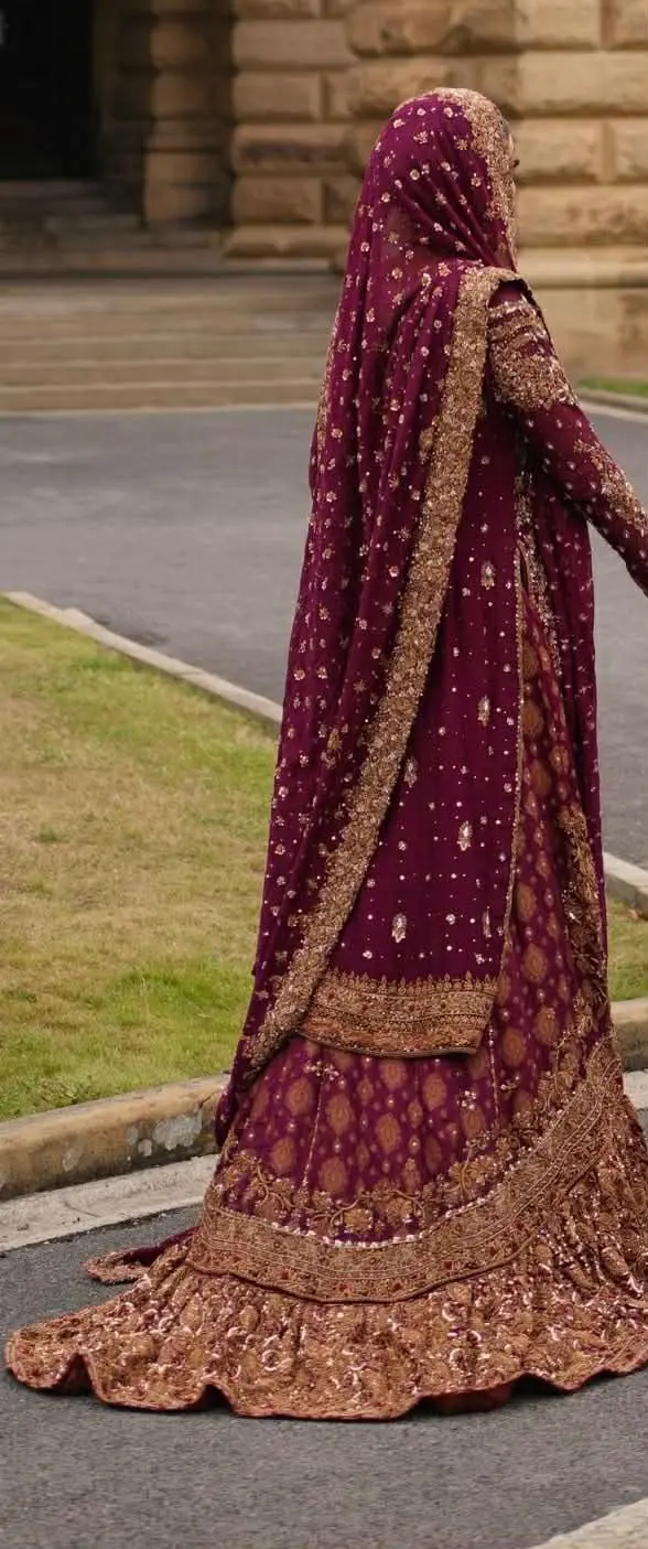 Cherry/Maroon bridal outfit size UK 8/10 with potli bag