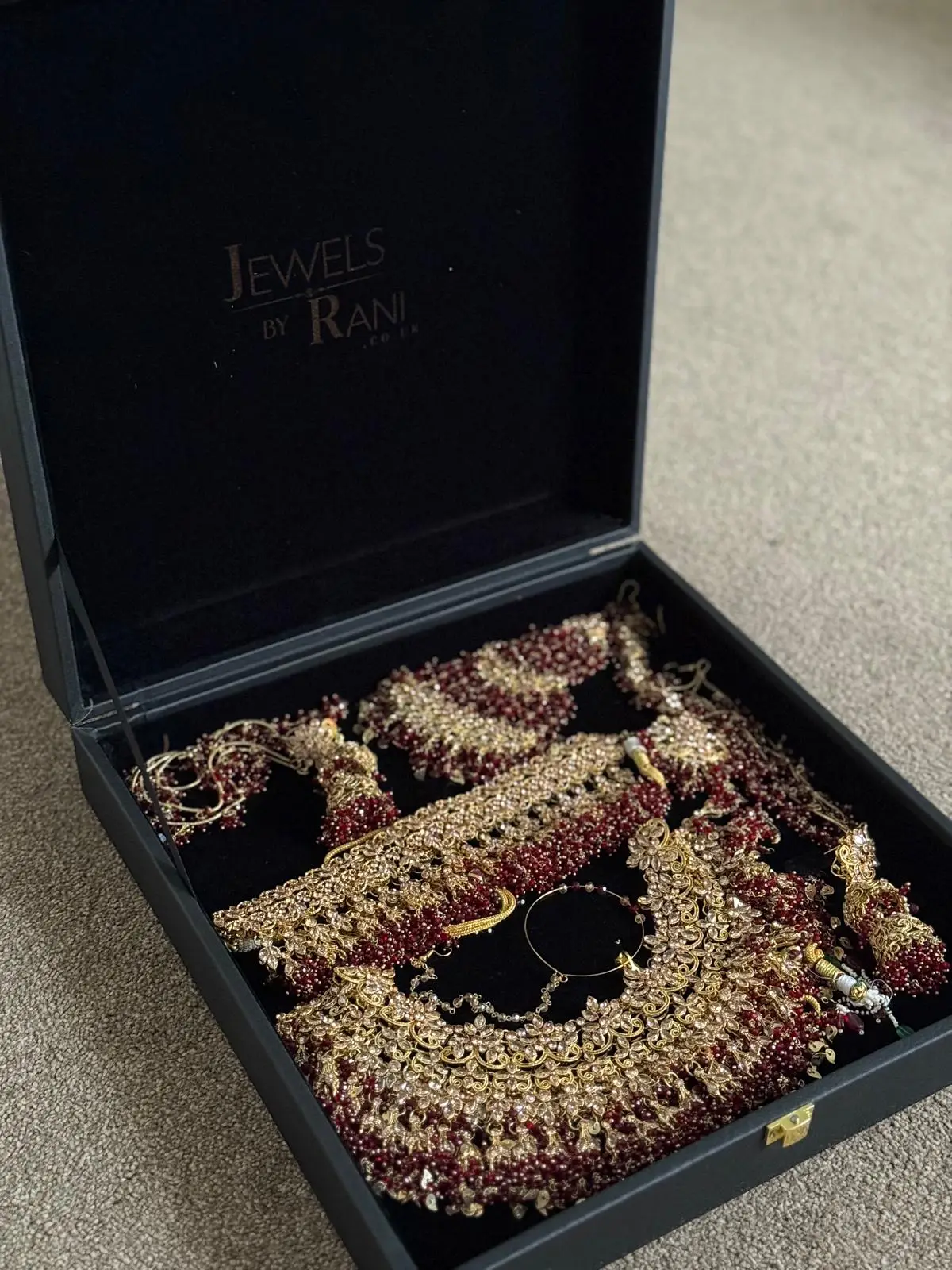 Also available to buy separately Matching Jewellery Set- 24 carat gold plated (Choker, Necklace, Earrings, Tikka, Jummer, Nose Ring)