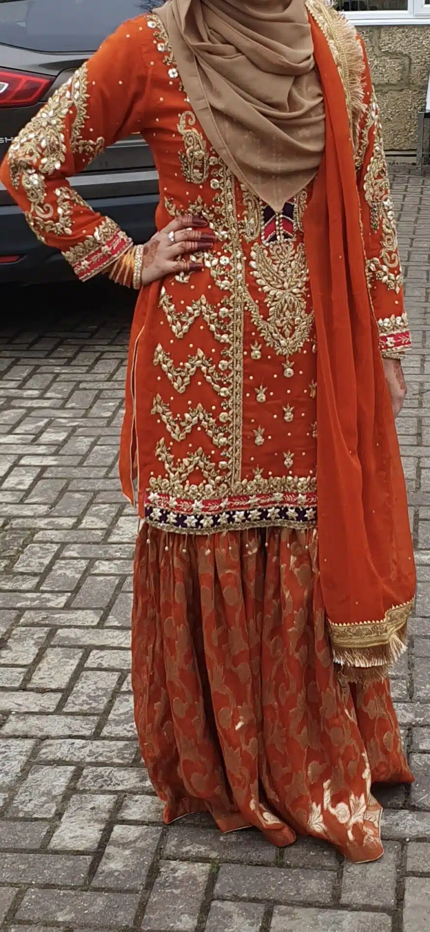 Orange garaga 3 peice suite. Perfect for mehndi function.