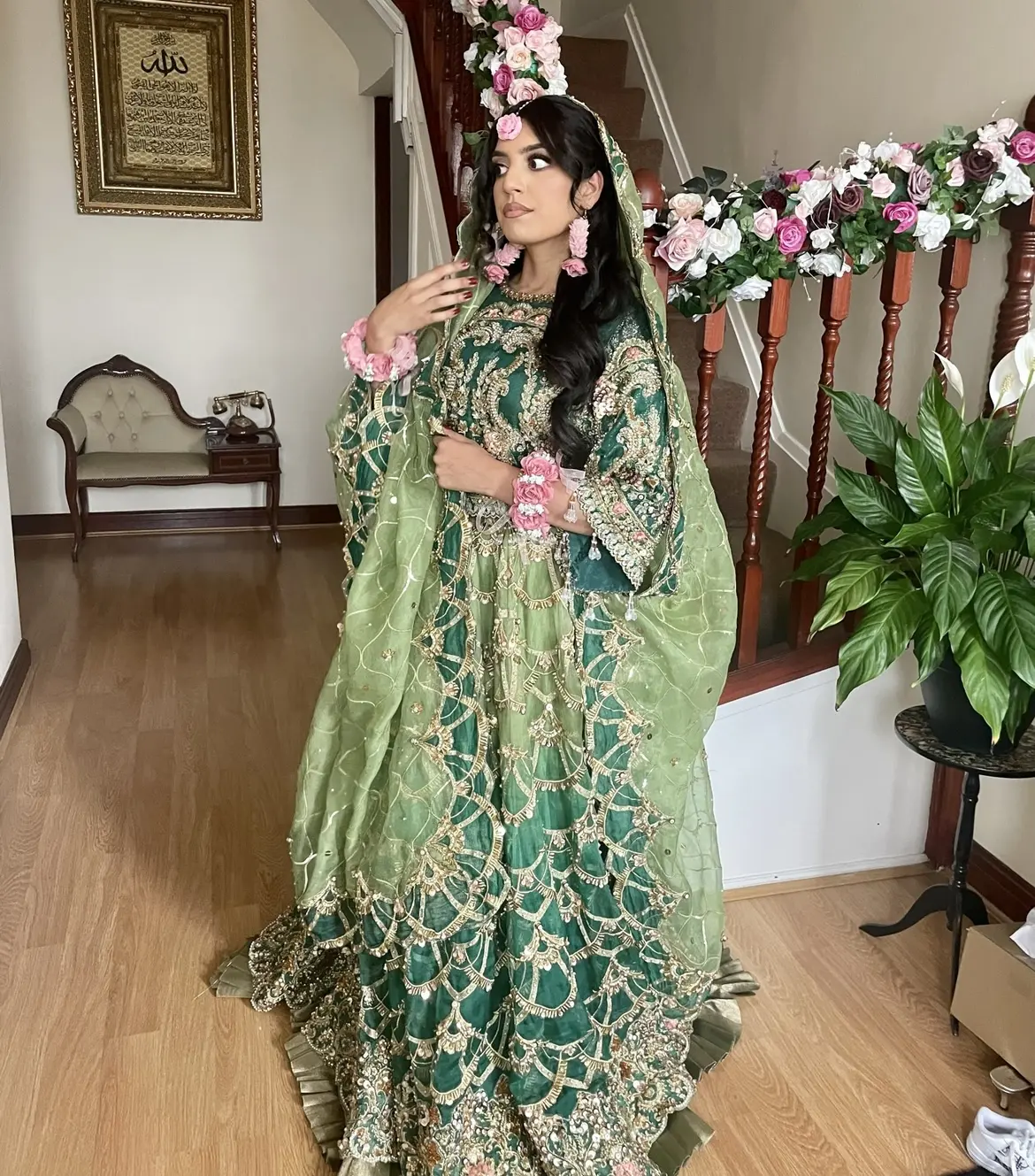 Beautiful lehnga choli in different shades of green.