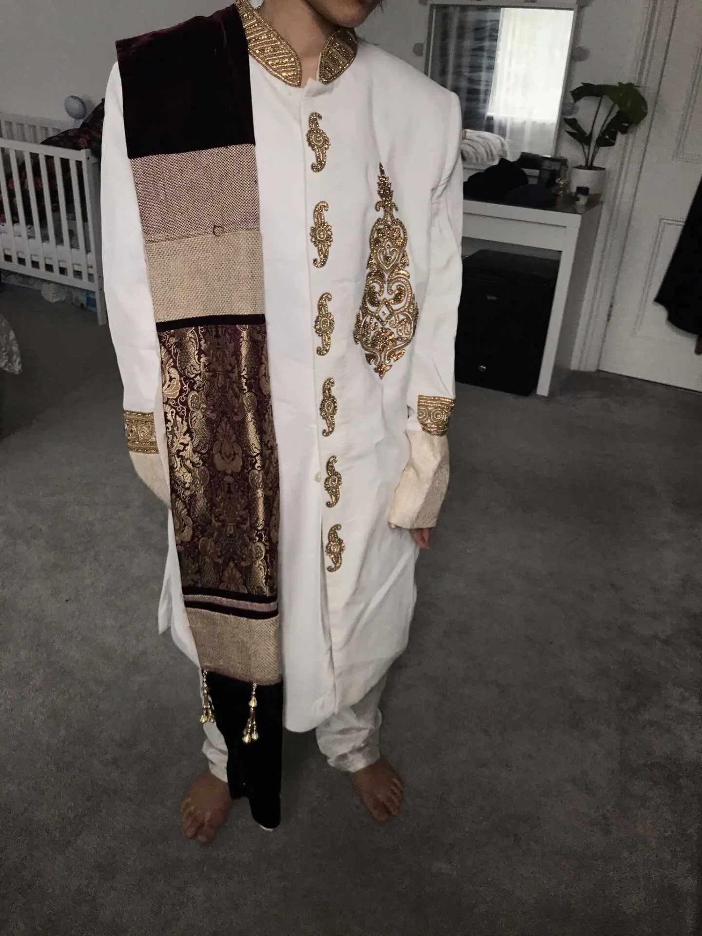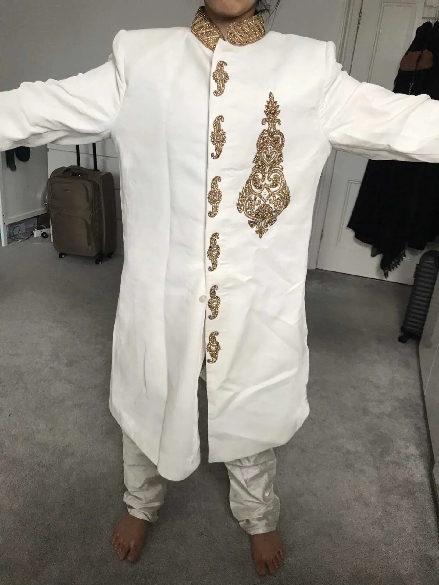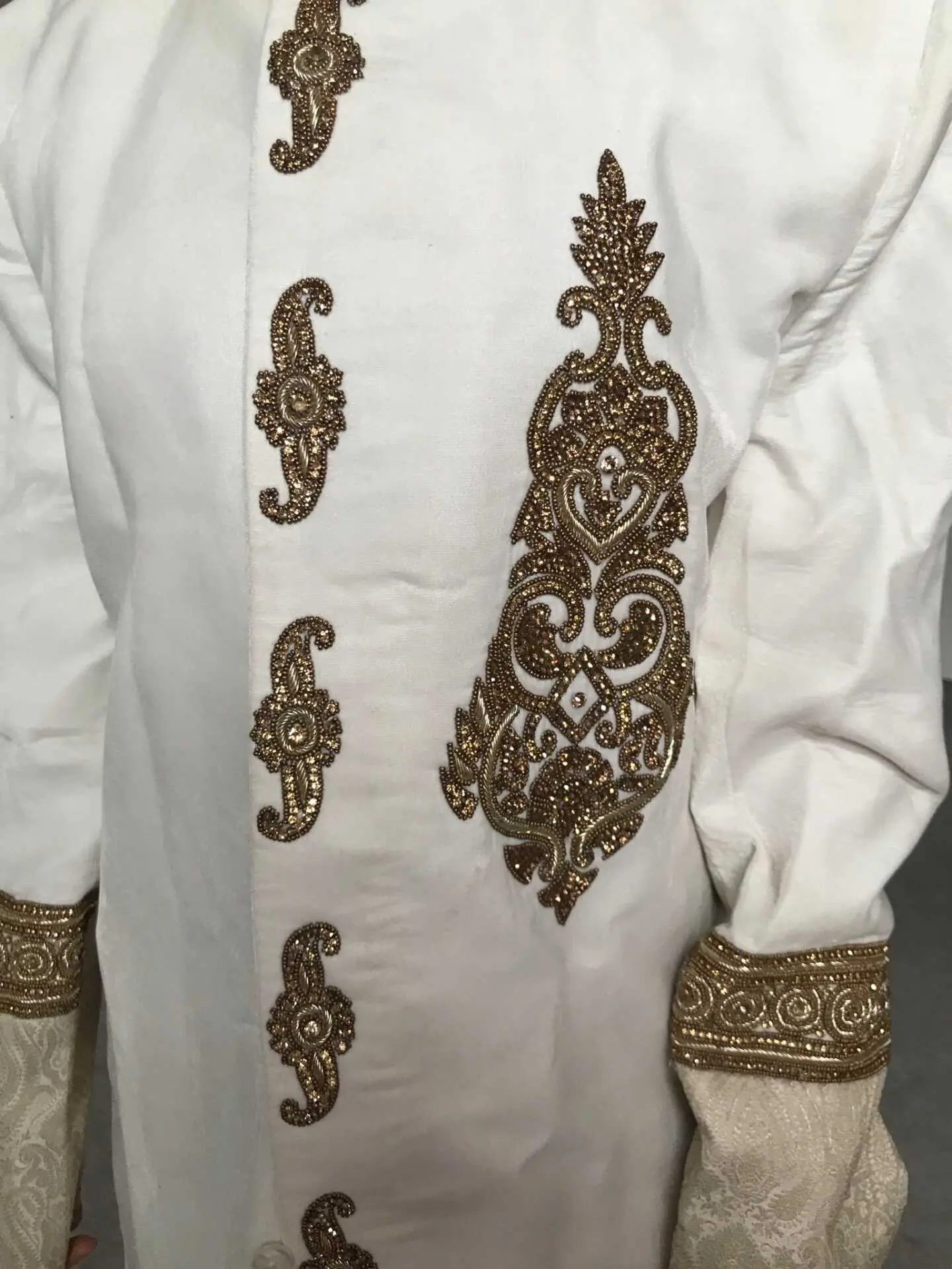 White and gold wedding suit for groom