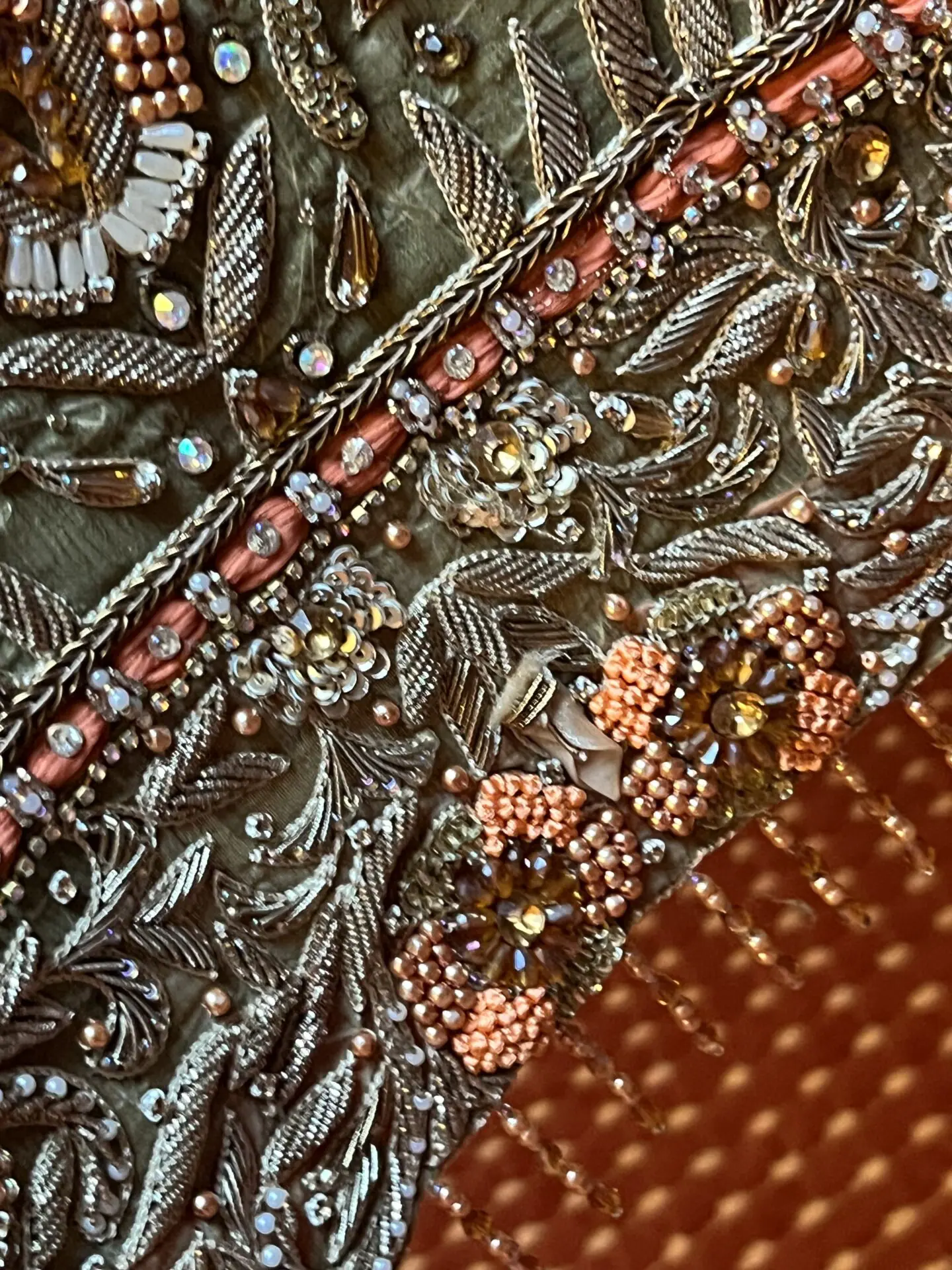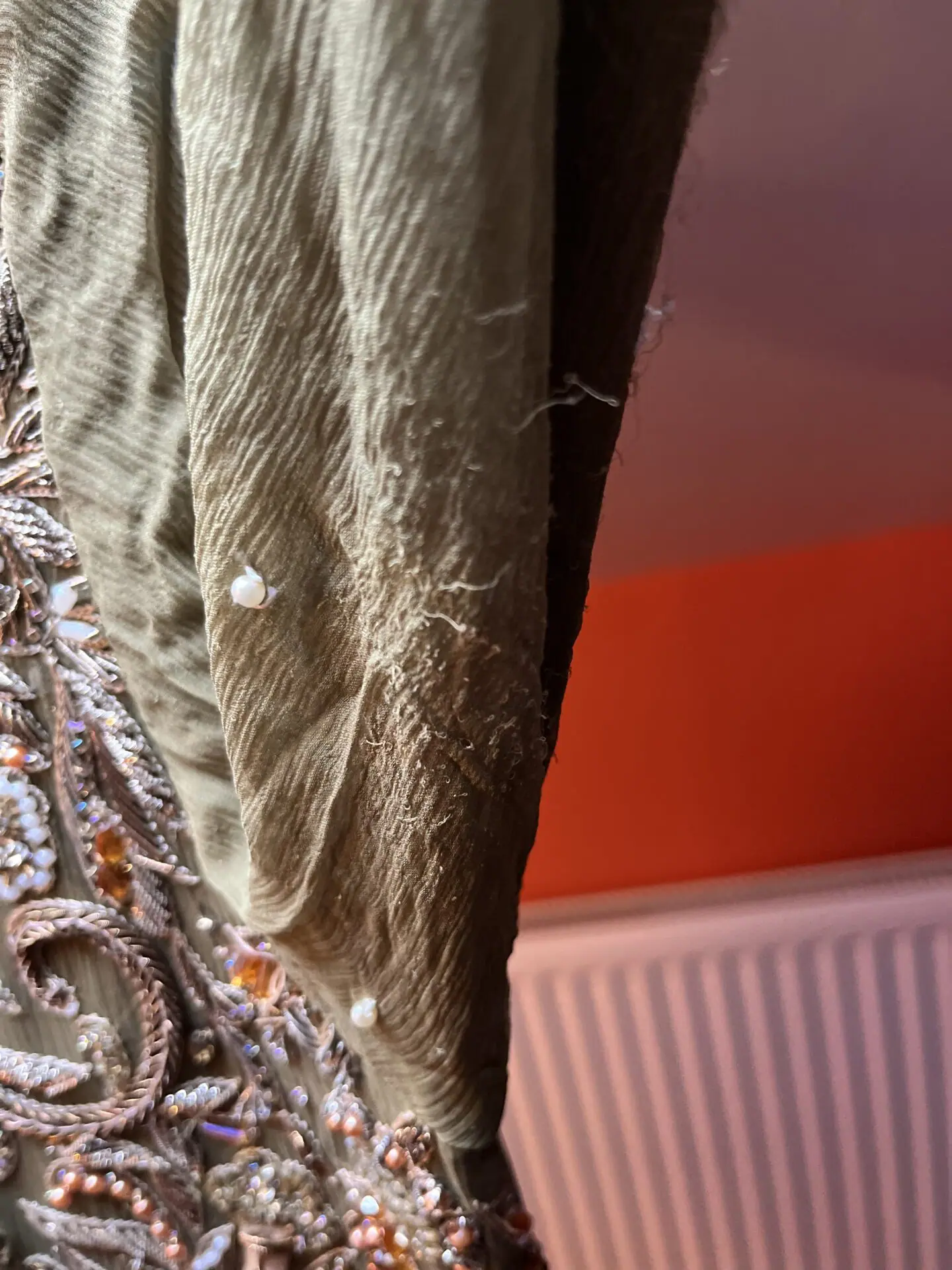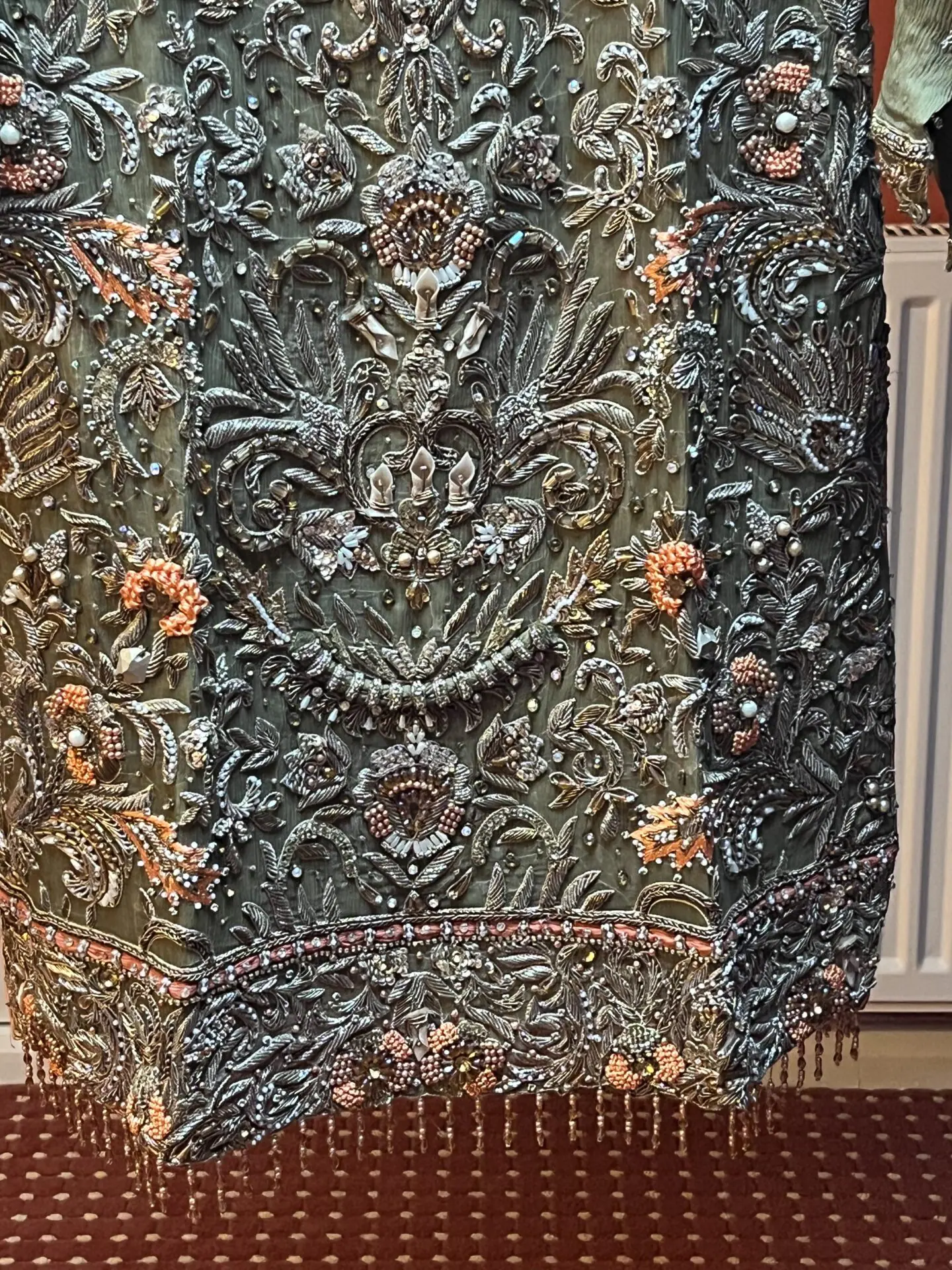 A lovely heavy embroidered sharala suit ideal for wedding/party, only worn once for a few hours, a few scuffs under the arms (see pictures) but apart from that in very good condition, originally purchased for £650
