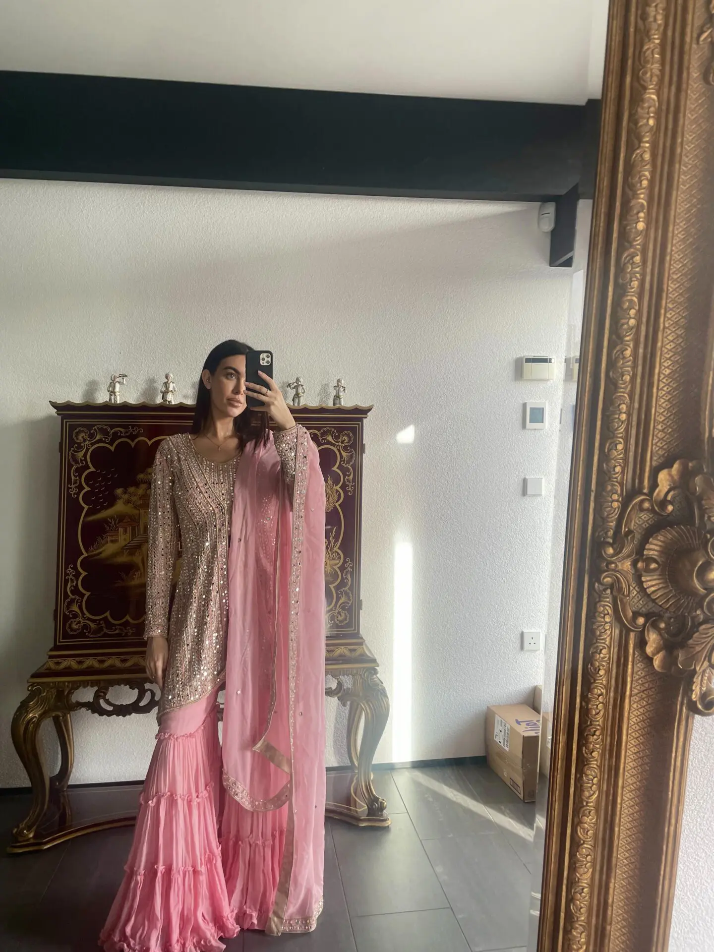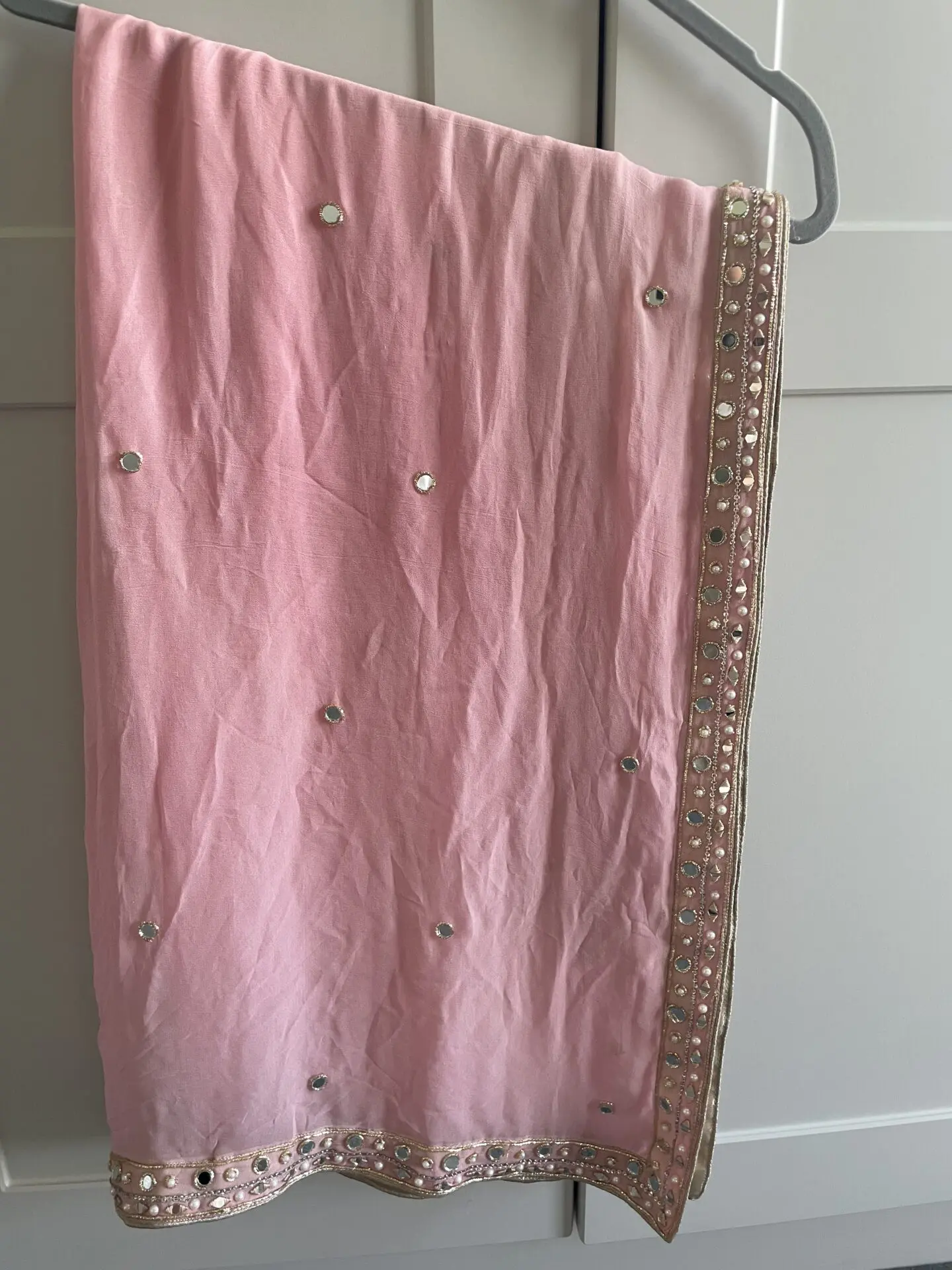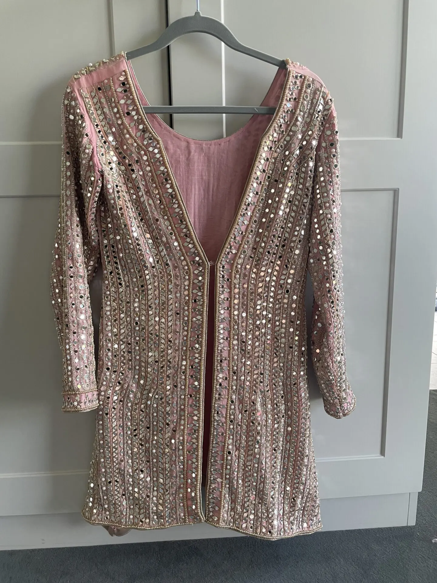 Zoya Ethereal hand embroidered pearl and glass detail top and jacket with matching scarf. Worn once for a wedding ceremony. One of kind piece. Italian lightweight material. RRP £600.